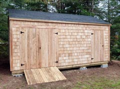 For those of you with a more traditional New England spirit, Shedmaster can also place clapboards on the exterior of your shed. All custom shed designs and construction are individually quoted at the time of the specification development. Give us a call at 1-800-618-8118 and let's discuss the type of siding you want to see on your shed.